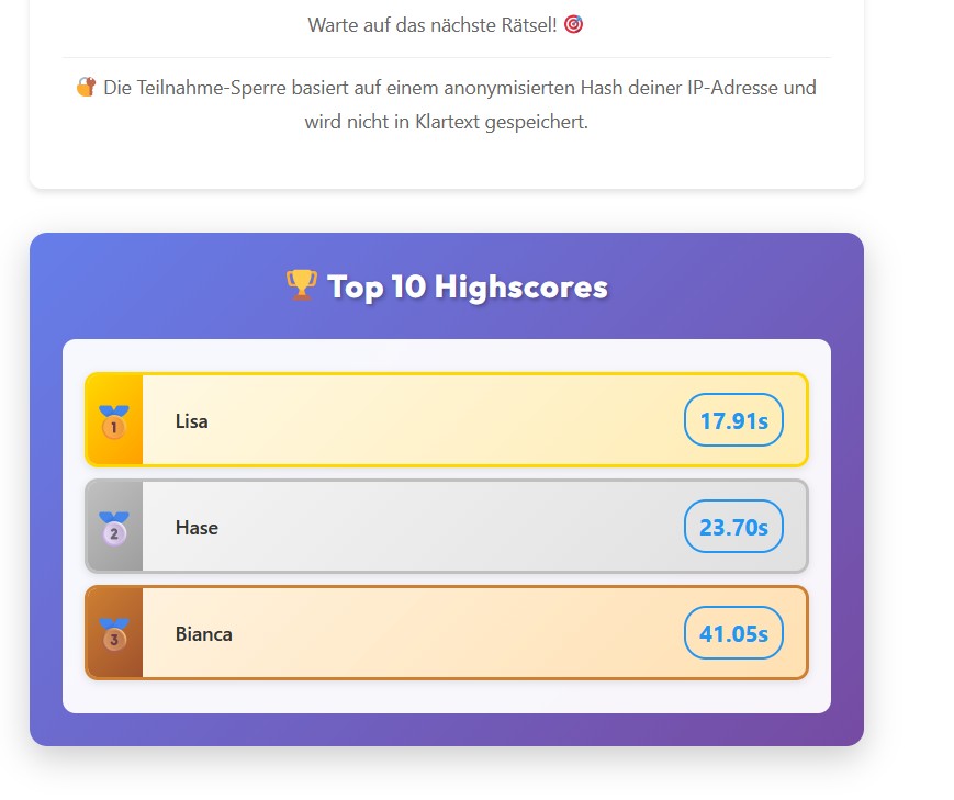 Beim Bilderrätsel ist dein Blick für Details gefragt. Hier musst du Bilder genau betrachten und das richtige Ergebnis herausfinden. Das Spiel ist ideal für alle, die gerne knobeln und ihre Beobachtungsgabe testen möchten. Gleichzeitig kannst du versuchen, einen Platz in den Highscores zu erreichen.