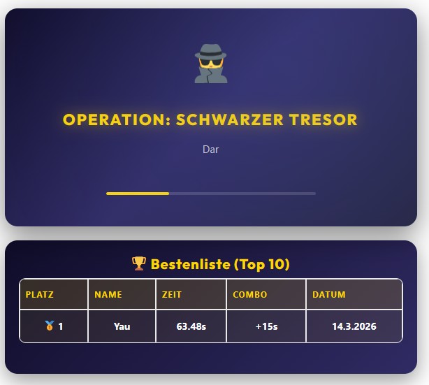 Beim Spiel „Tresor knacken“ musst du eine geheime Zahlenkombination erraten, um den Tresor zu öffnen. Mit jedem Versuch bekommst du Hinweise, ob Zahlen richtig sind oder an der falschen Position stehen. Mit etwas Geduld und cleverem Denken lässt sich der Tresor schließlich öffnen.